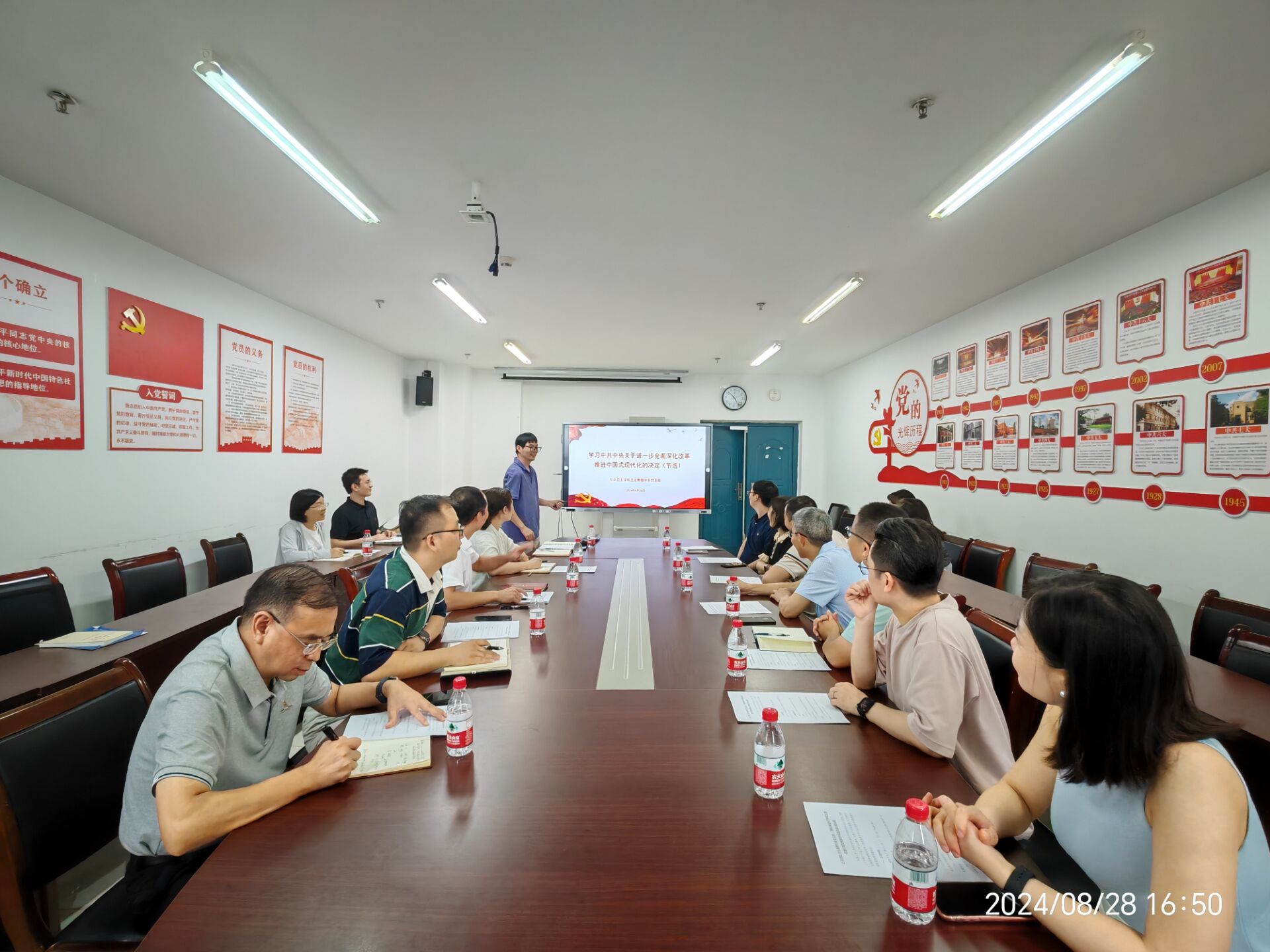 在集体学习交流中,张程首先代表党支部致欢迎辞,对周云一行的到来表示热烈欢迎,并强调了此次共建活动对于持续推动双方学科发展、深化科研合作的重要意义。双方分别就各自支部基本情况进行简要介绍,并集体学习研讨了《中共中央关于进一步全面深化改革推进中国式现代化的决定》,深入领会了党中央关于深化改革、推进现代化的战略部署和精神实质。