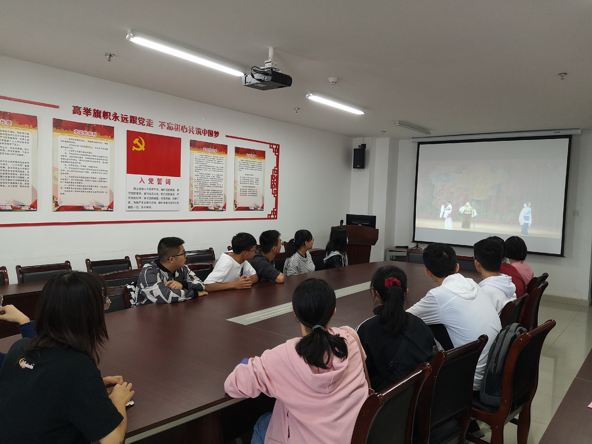 2020年10月1日适逢国庆中秋双节共度,晚19点30分,学院组织中秋假期留校同学通过在线观看直播的方式认真欣赏了黄梅戏《云楼会》。作为黄梅戏经典剧目,《云楼会》讲述了南宋时期才子佳人的故事,其唱腔细腻动人,曲调优美大方。黄梅戏载歌载舞、质朴细腻、真实活泼、富有生活气息的表演,使同学们很快沉浸于浓厚的古典氛围中。