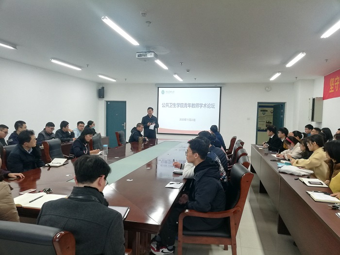 近日,公共卫生学院举办青年教师学术论坛,该院副院长徐德祥主持论坛。