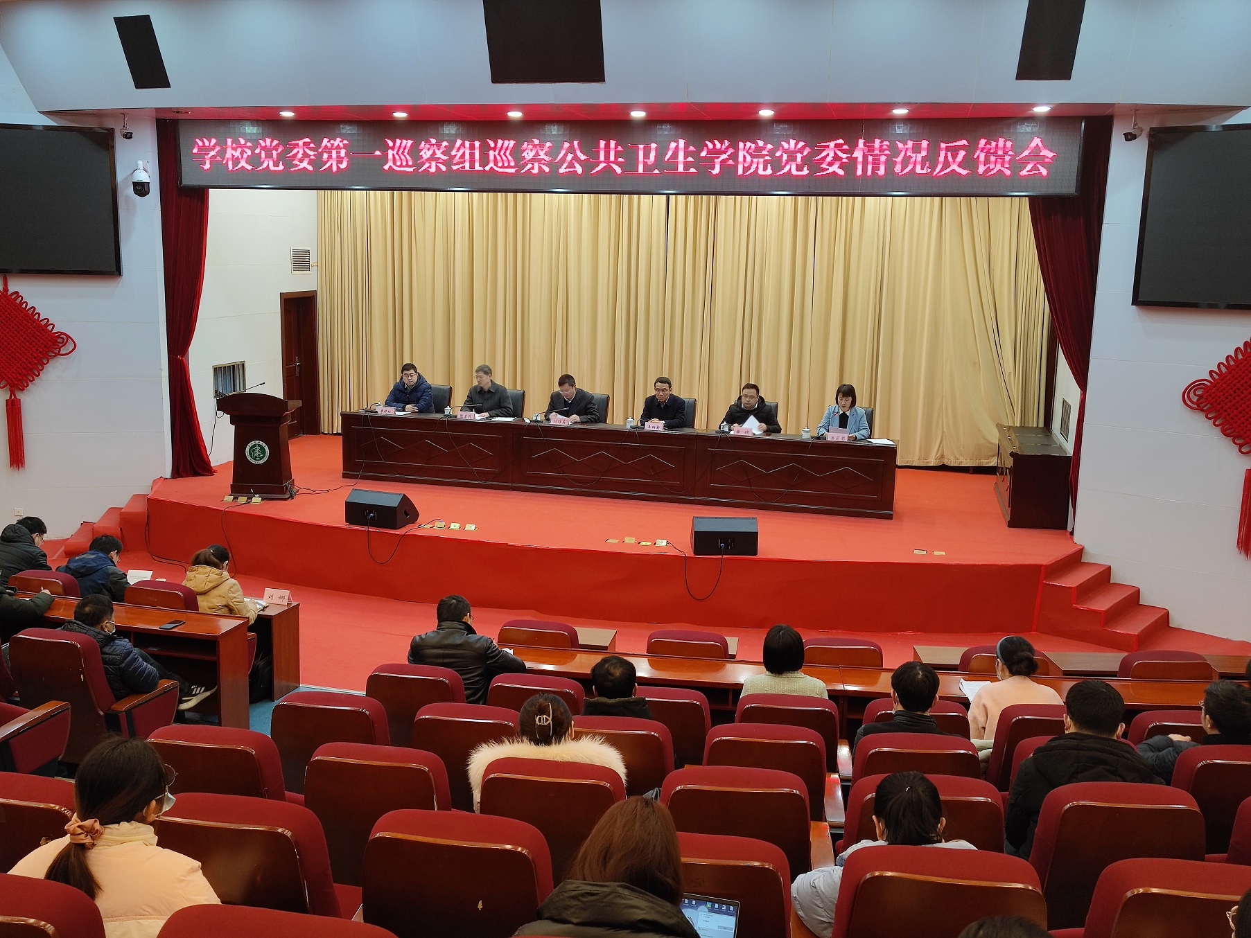 校党委第一巡察组副组长章镜、校纪委办内设机构负责人李晓松、巡察组成员及公共卫生学院党政领导班子成员参加会议。学院内设机构主要负责人、党支部支委会成员、“两代表一委员”、教代会执委、高级职称人员、学生代表等列席会议。