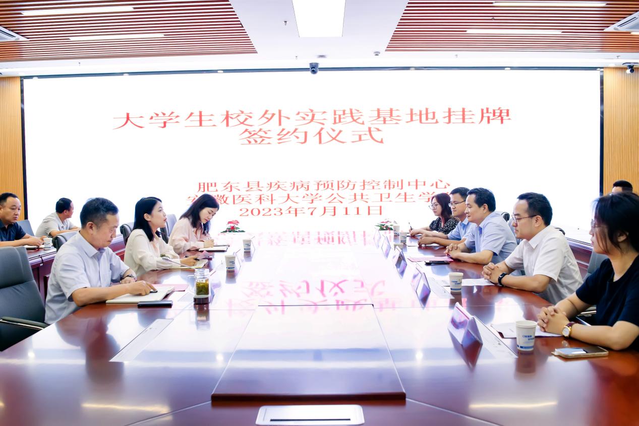 7月11日上午9:30,公共卫生学院与肥东县疾病预防控制中心校外实践基地签约暨揭牌仪式在肥东县公共卫生管理中心圆满举行。公共卫生学院党委书记马军成、执行院长王华、肥东县政府机关党组成员、综合室主任魏云红与肥东县卫健委党委委员、县疾控中心主任谈其干出席仪式,并共同为校外实践基地揭牌。公共卫生学院副院长潘海峰、县卫健委办公室主任张静等参加揭牌仪式。